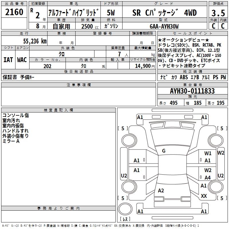 TOYOTA ALPHARD HYBRID SR C PACKAGE 4WD - лот 2160
