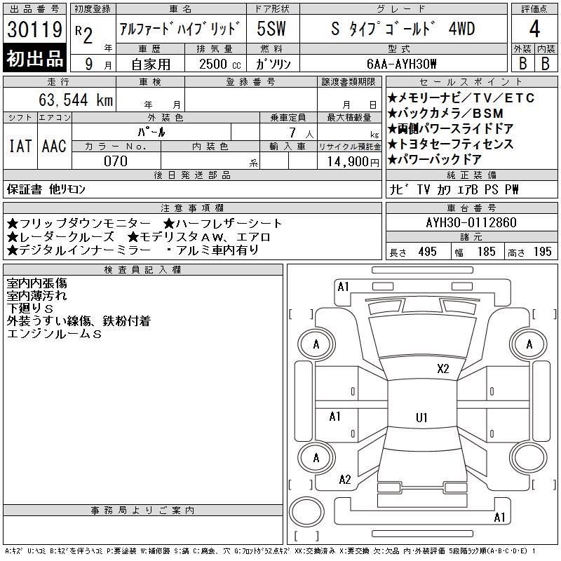 TOYOTA ALPHARD HYBRID S TYPE GOLD 4WD - лот 30119