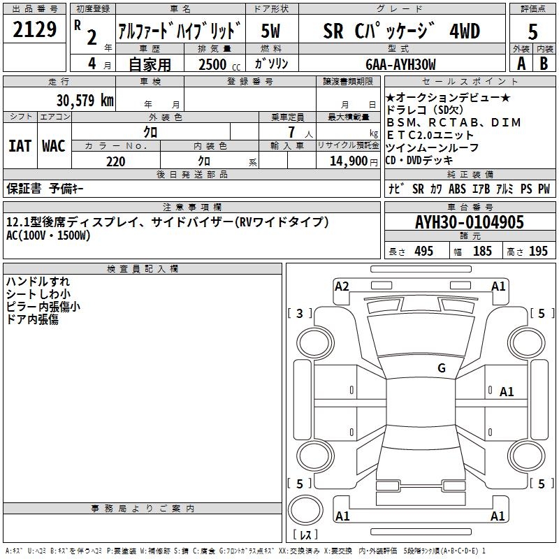 TOYOTA ALPHARD HYBRID SR C PACKAGE 4WD - лот 2129