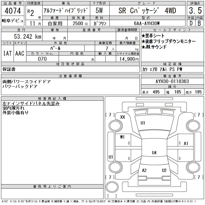 TOYOTA ALPHARD HYBRID SR C PACKAGE 4WD - лот 4074