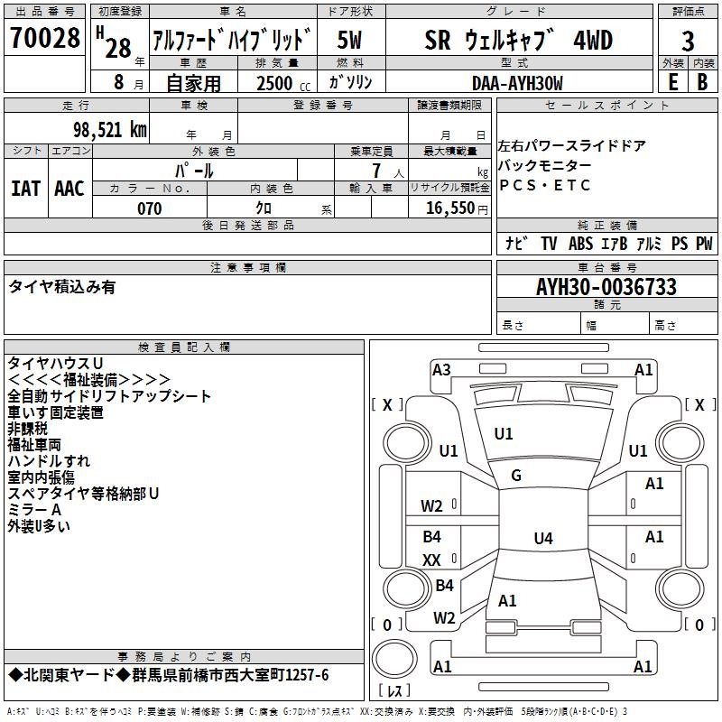 TOYOTA ALPHARD HYBRID SR WELL CAB 4WD - лот 70028