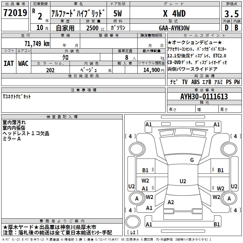 TOYOTA ALPHARD HYBRID X 4WD - лот 72019
