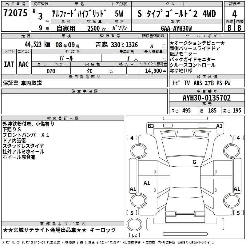 TOYOTA ALPHARD HYBRID S TYPE GOLD 2 4WD - лот 72075