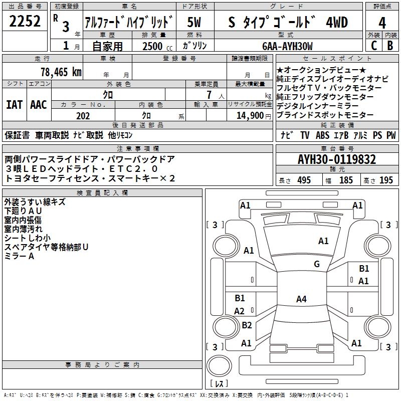 TOYOTA ALPHARD HYBRID S TYPE GOLD 4WD - лот 2252