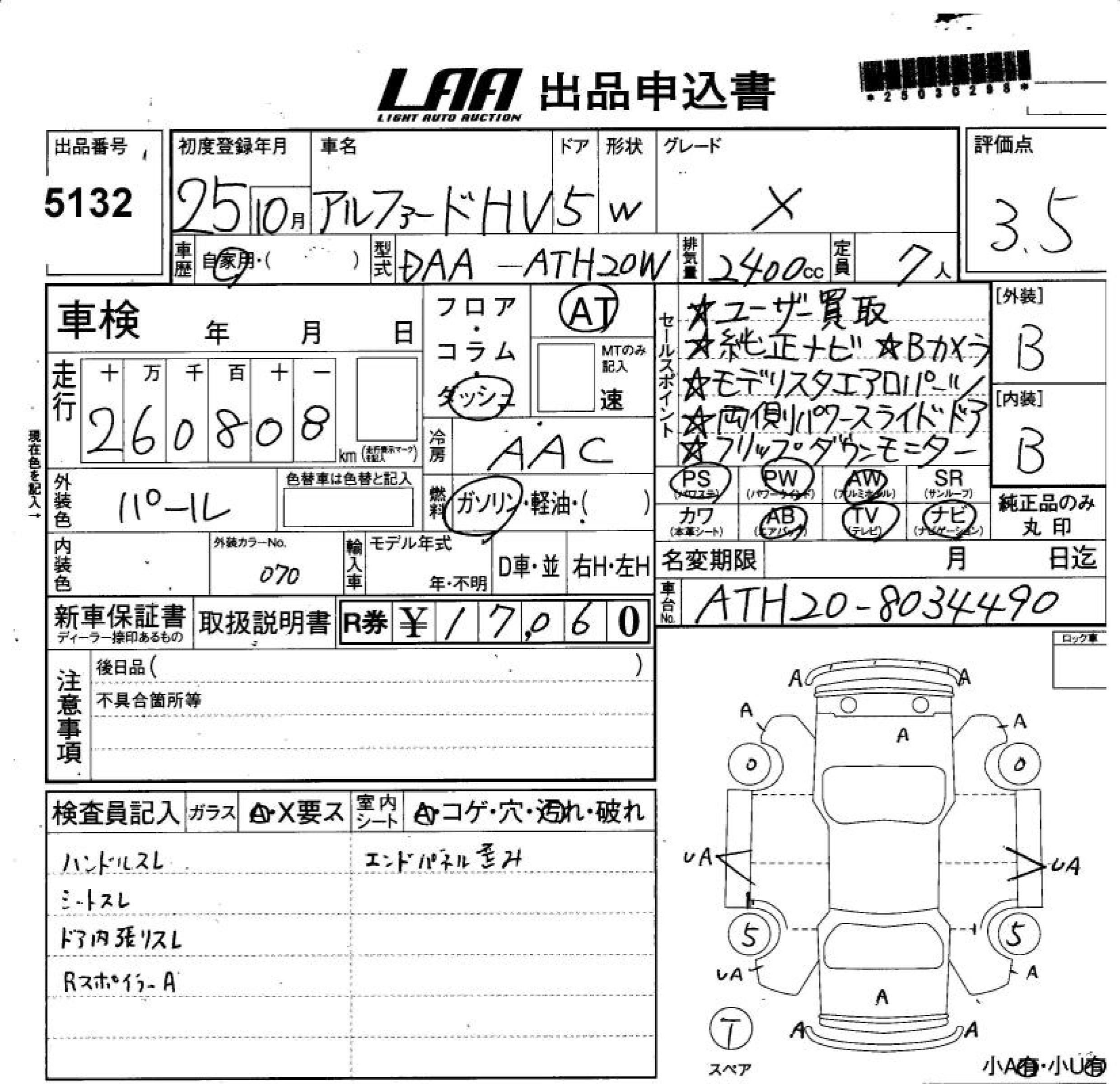 TOYOTA ALPHARD HYBRID HYBRID X - лот 5132