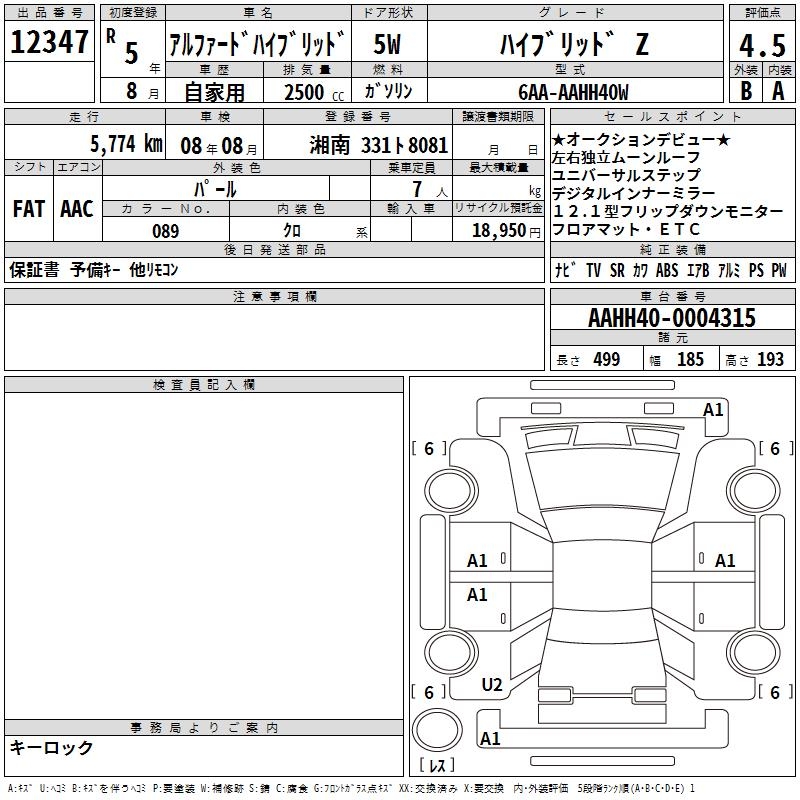 TOYOTA ALPHARD HYBRID - лот 12347
