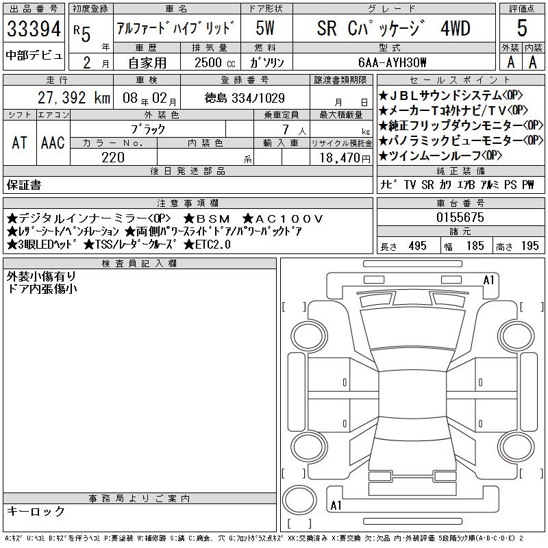 TOYOTA ALPHARD HYBRID SR C PACKAGE 4WD - лот 33394