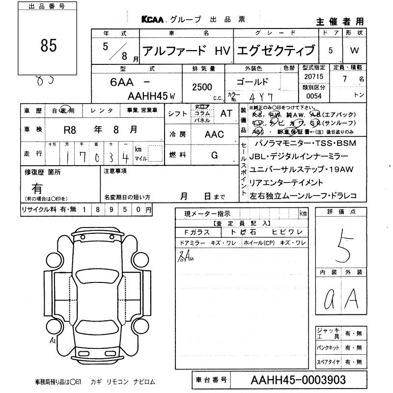 TOYOTA ALPHARD HYBRID EXECUTIVE LOUNGE - лот 85
