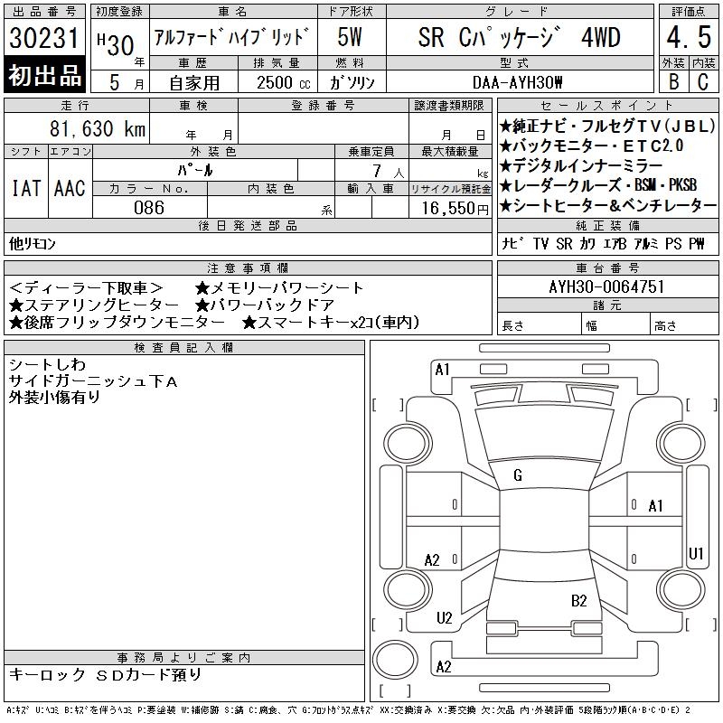 TOYOTA ALPHARD HYBRID SR C PACKAGE 4WD - лот 30231