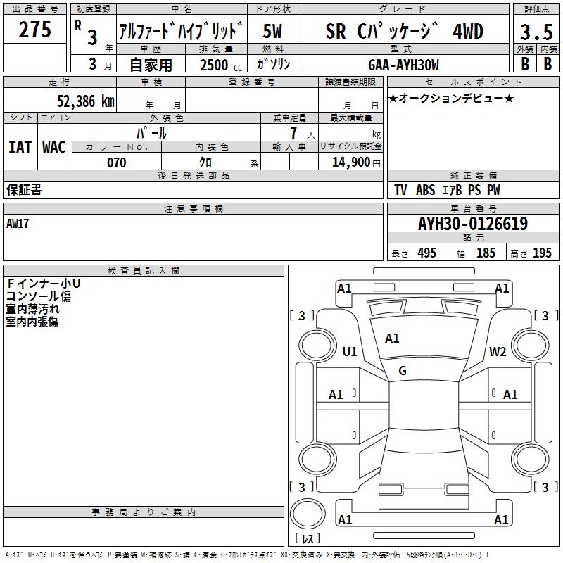 TOYOTA ALPHARD HYBRID SR C PACKAGE 4WD - лот 275