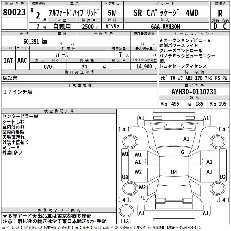 TOYOTA ALPHARD HYBRID SR C PACKAGE 4WD - лот 80023