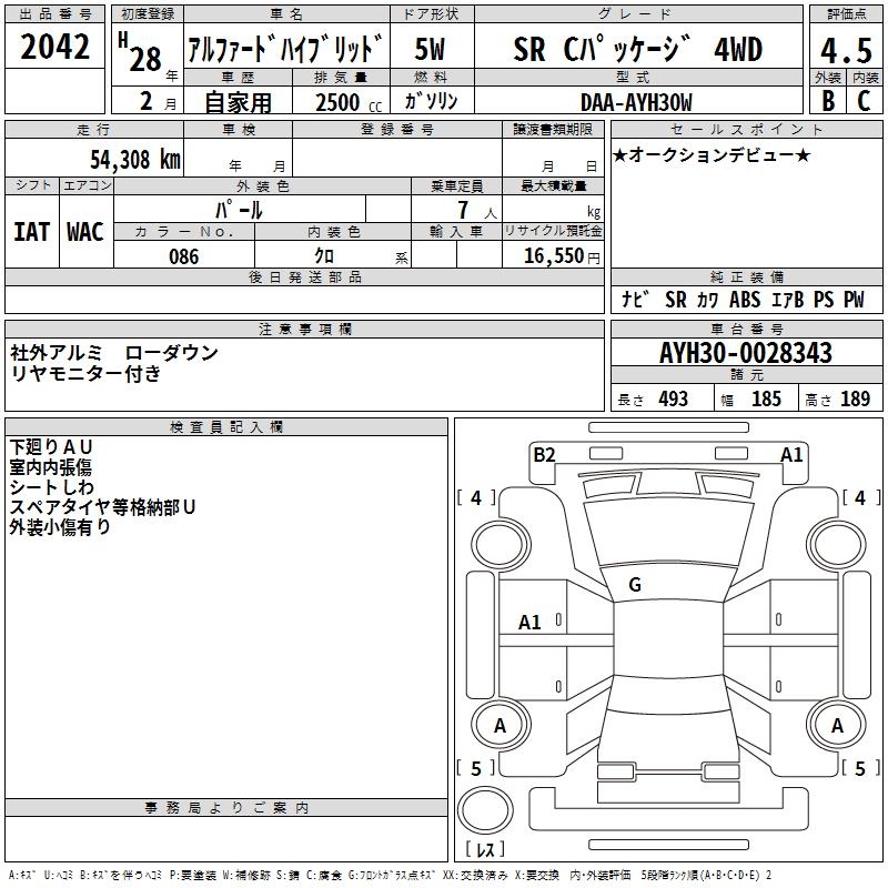 TOYOTA ALPHARD HYBRID SR C PACKAGE 4WD - лот 2042