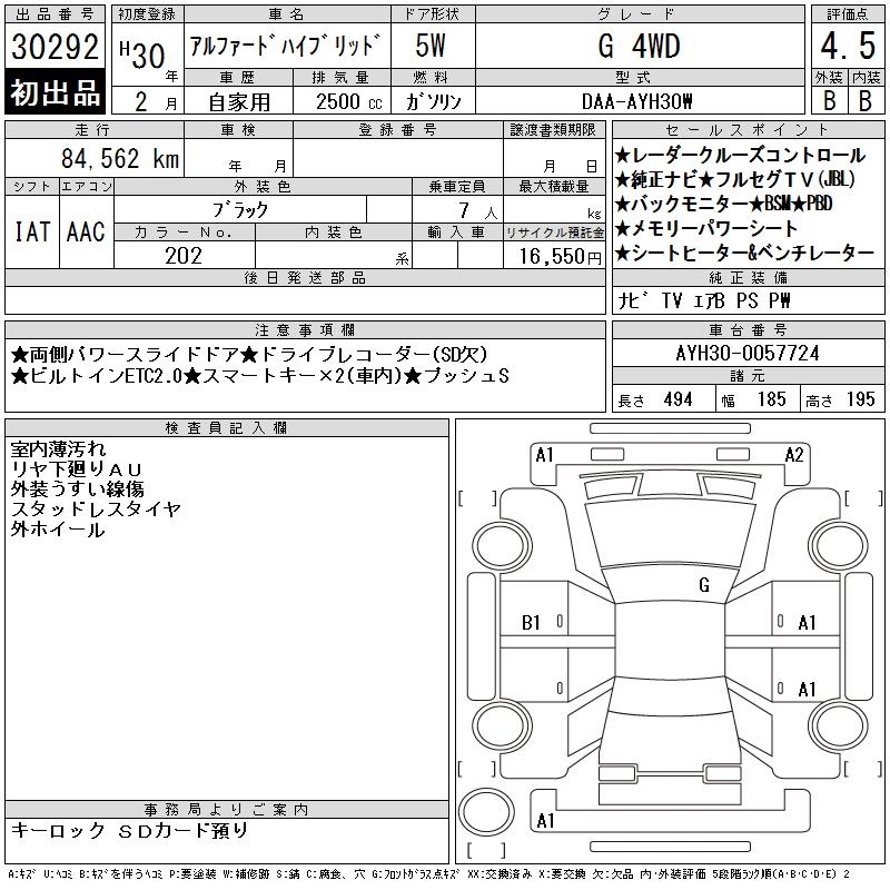 TOYOTA ALPHARD HYBRID G 4WD - лот 30292