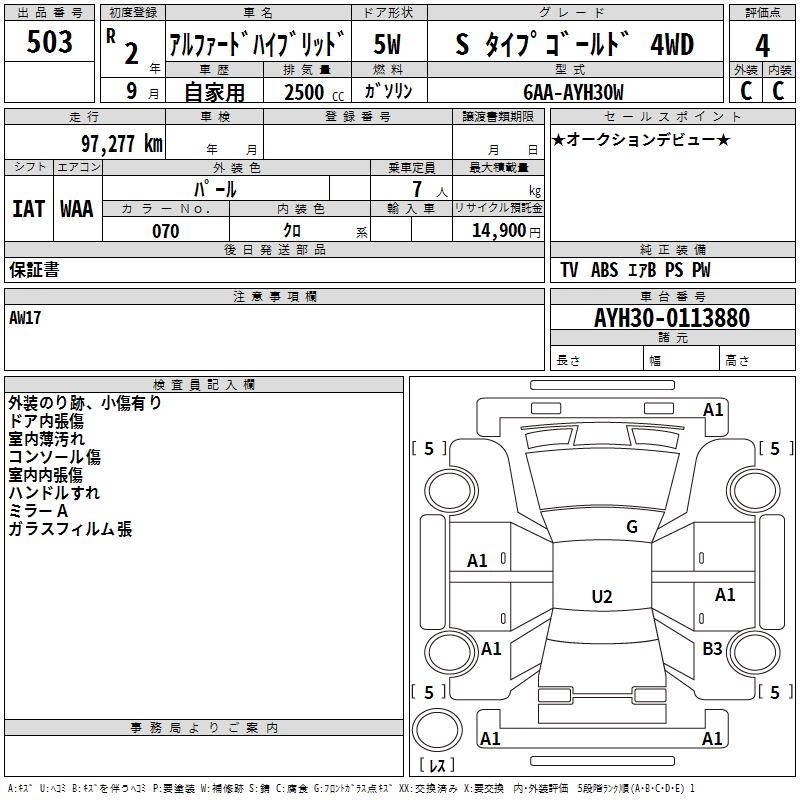 TOYOTA ALPHARD HYBRID S TYPE GOLD 4WD - лот 503