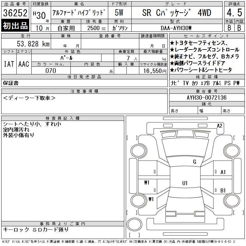 TOYOTA ALPHARD HYBRID SR C PACKAGE 4WD - лот 36252