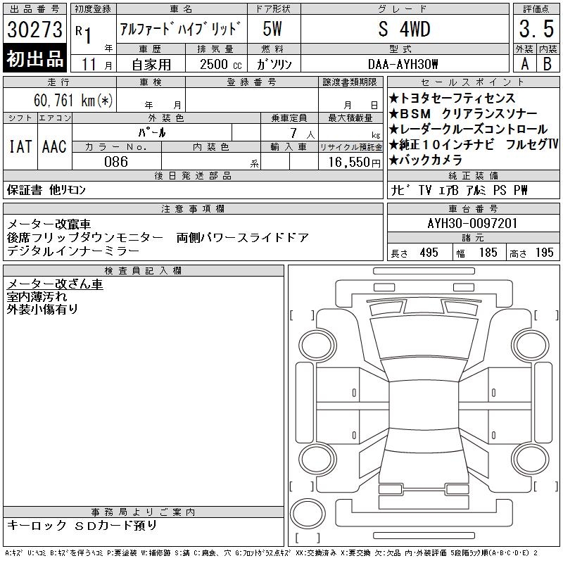 TOYOTA ALPHARD HYBRID S 4WD - лот 30273