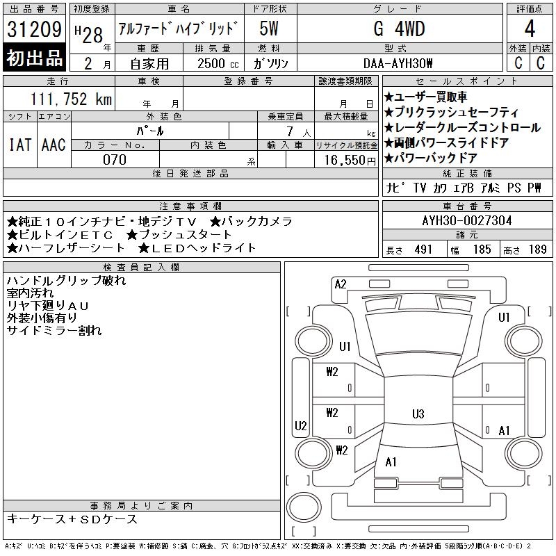 TOYOTA ALPHARD HYBRID G 4WD - лот 31209