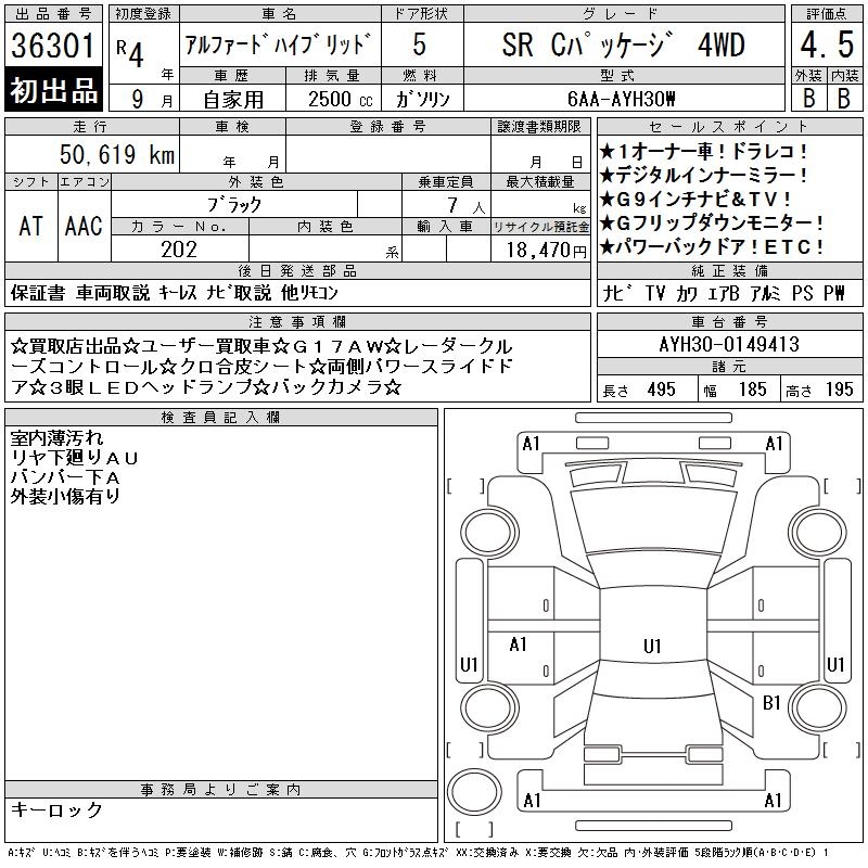 TOYOTA ALPHARD HYBRID SR C PACKAGE 4WD - лот 36301
