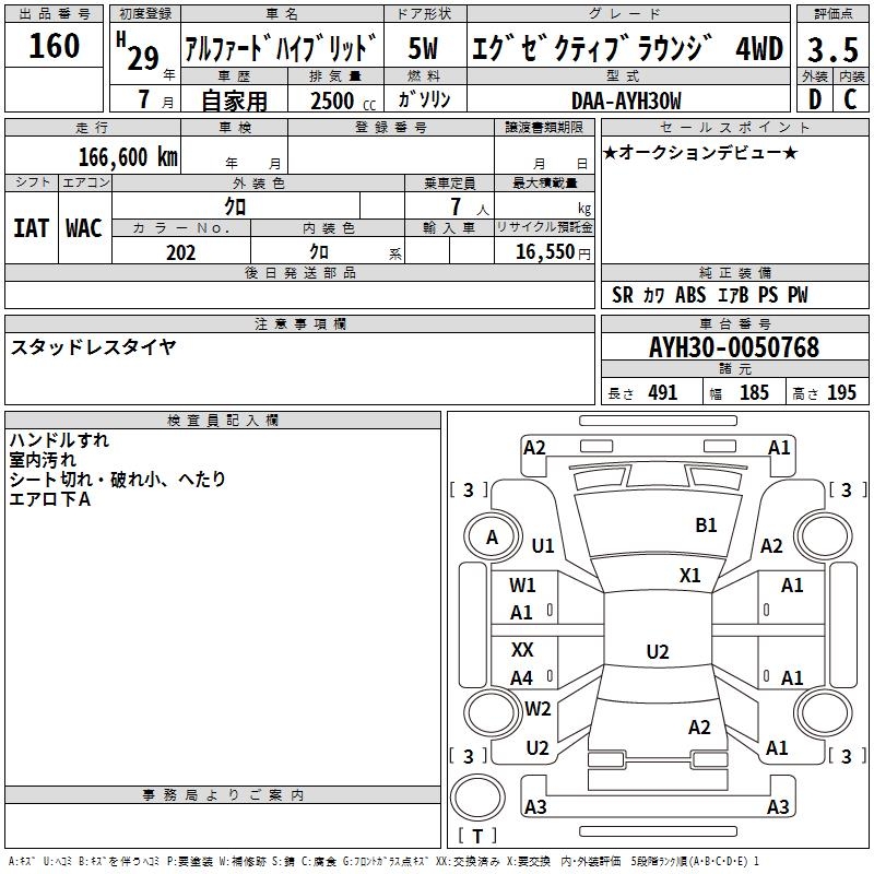 TOYOTA ALPHARD HYBRID EXECUTIVE LOUNGE 4WD - лот 160