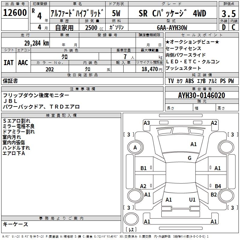 TOYOTA ALPHARD HYBRID SR C PACKAGE 4WD - лот 12600
