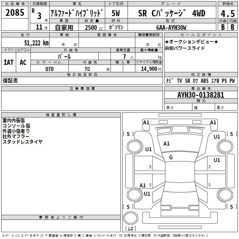 TOYOTA ALPHARD HYBRID SR C PACKAGE 4WD - лот 2085