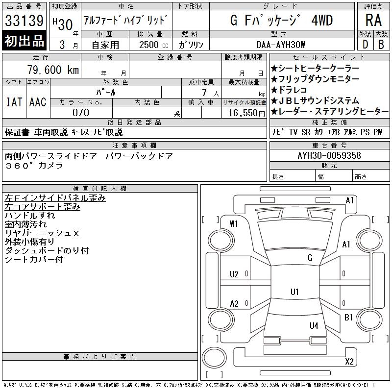 TOYOTA ALPHARD HYBRID G F PACKAGE 4WD - лот 33139