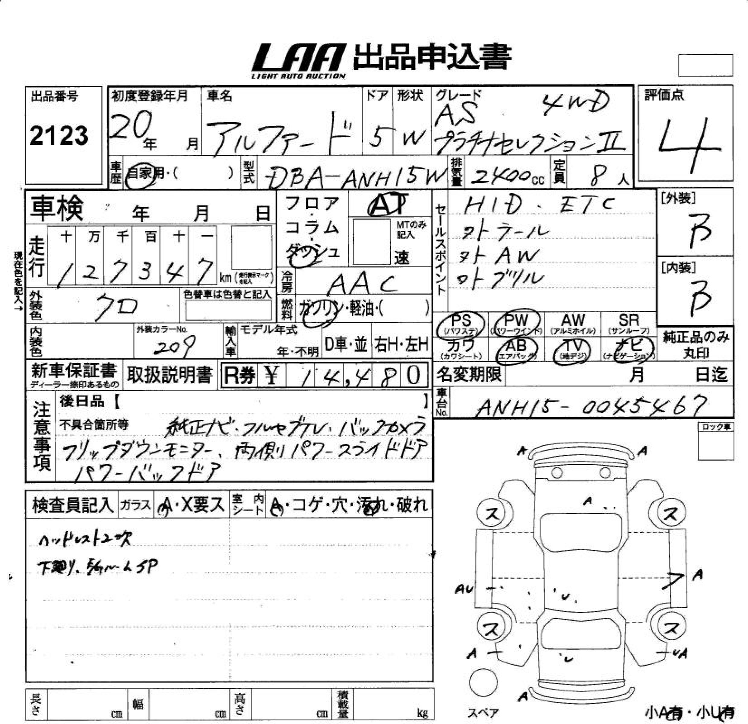 TOYOTA ALPHARD V AS PLATINUM SELECTION . - лот 2123