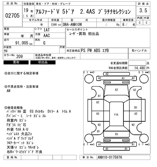 TOYOTA ALPHARD V 2.4AS PLATINUM SELECTION - лот 2705