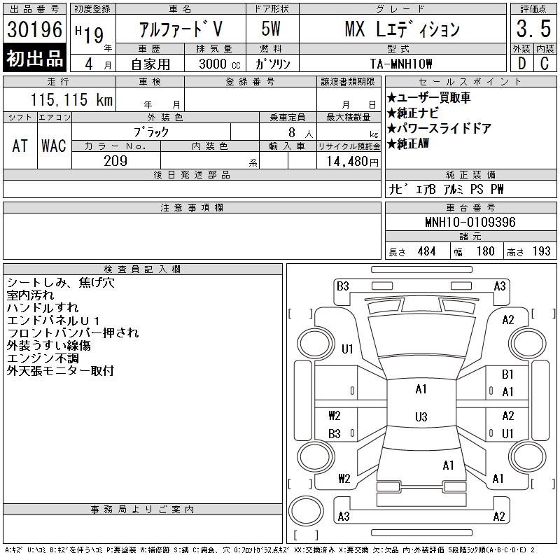 TOYOTA ALPHARD V MX L EDITION - лот 30196