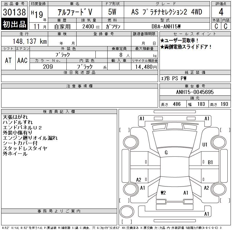 TOYOTA ALPHARD V AS PLATINUM SELECTION 2 4WD - лот 30138