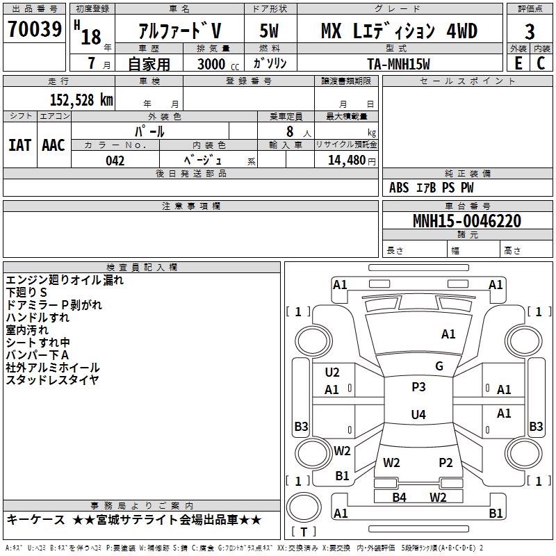 TOYOTA ALPHARD V MX L EDITION 4WD - лот 70039