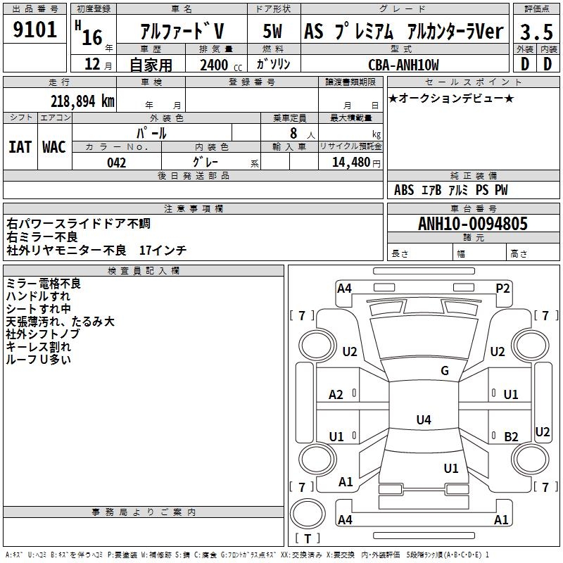 TOYOTA ALPHARD V AS PREMIUM ALCANTARA VER - лот 9101