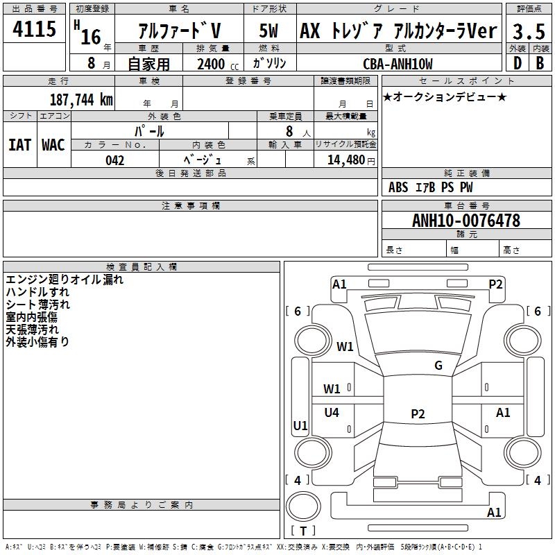 TOYOTA ALPHARD V AX TRESOR ALCANTARA VER - лот 4115