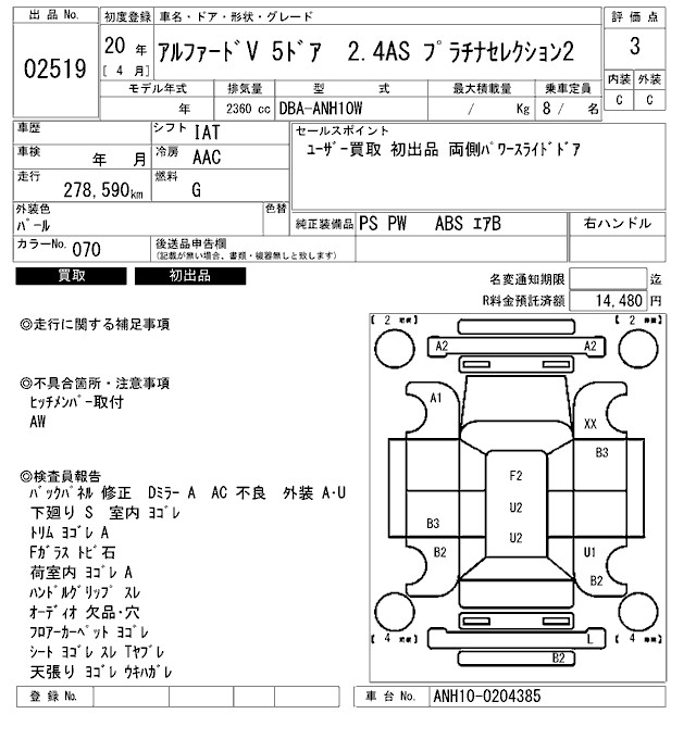TOYOTA ALPHARD V 2.4AS PLATINUM SELECTION 2 - лот 2519