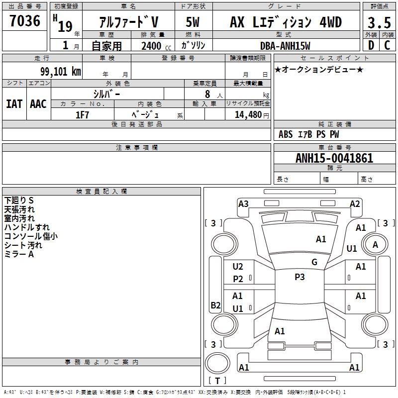 TOYOTA ALPHARD V AX L EDITION 4WD - лот 7036