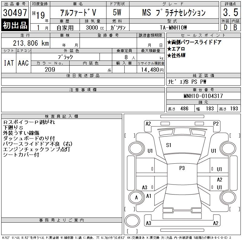 TOYOTA ALPHARD V MS PLATINUM SELECTION - лот 30497