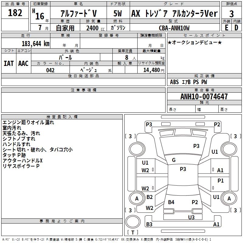 TOYOTA ALPHARD V AX TRESOR ALCANTARA VER - лот 182