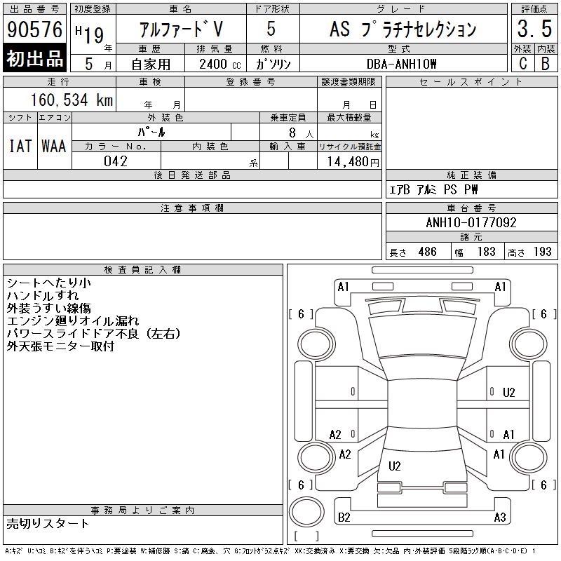 TOYOTA ALPHARD V AS PLATINUM SELECTION - лот 90576