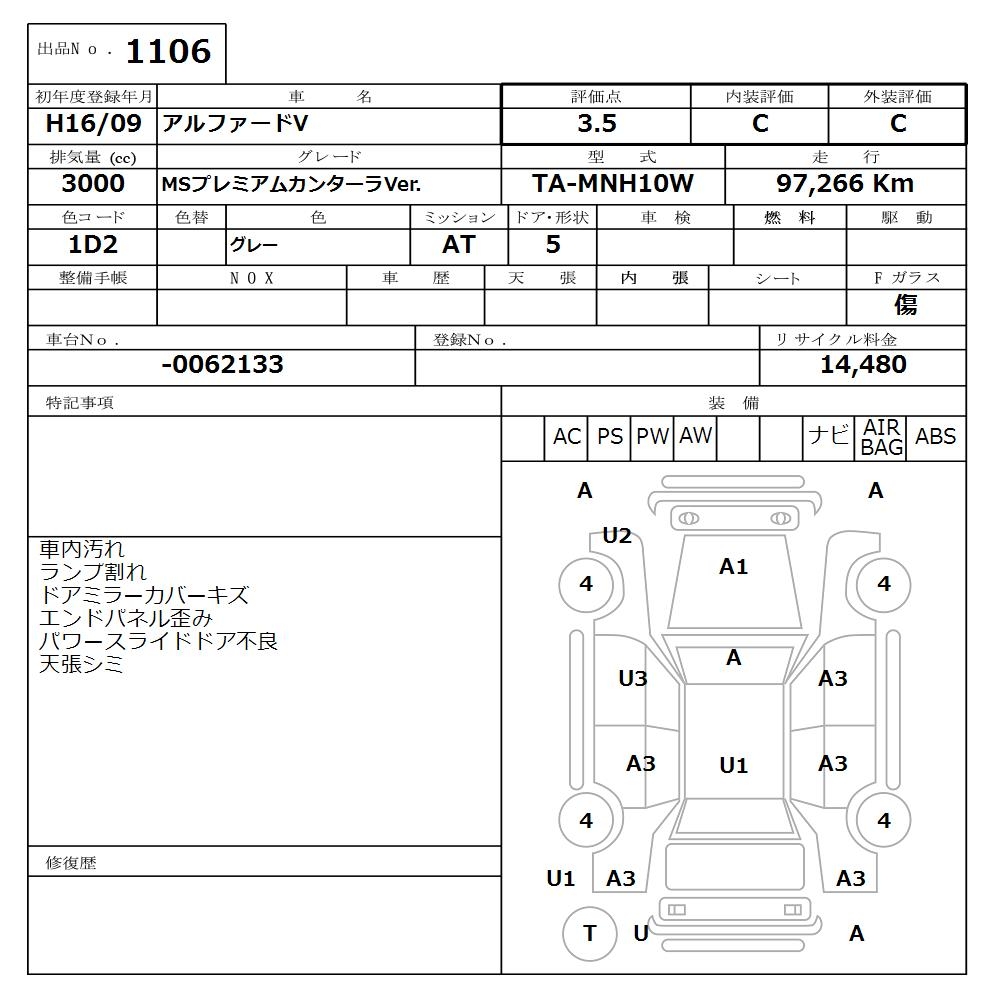 TOYOTA ALPHARD V MS PREMIUM KAN MANY -LAVER. - лот 1106