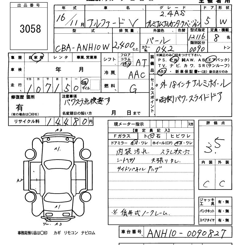 TOYOTA ALPHARD V - лот 3058