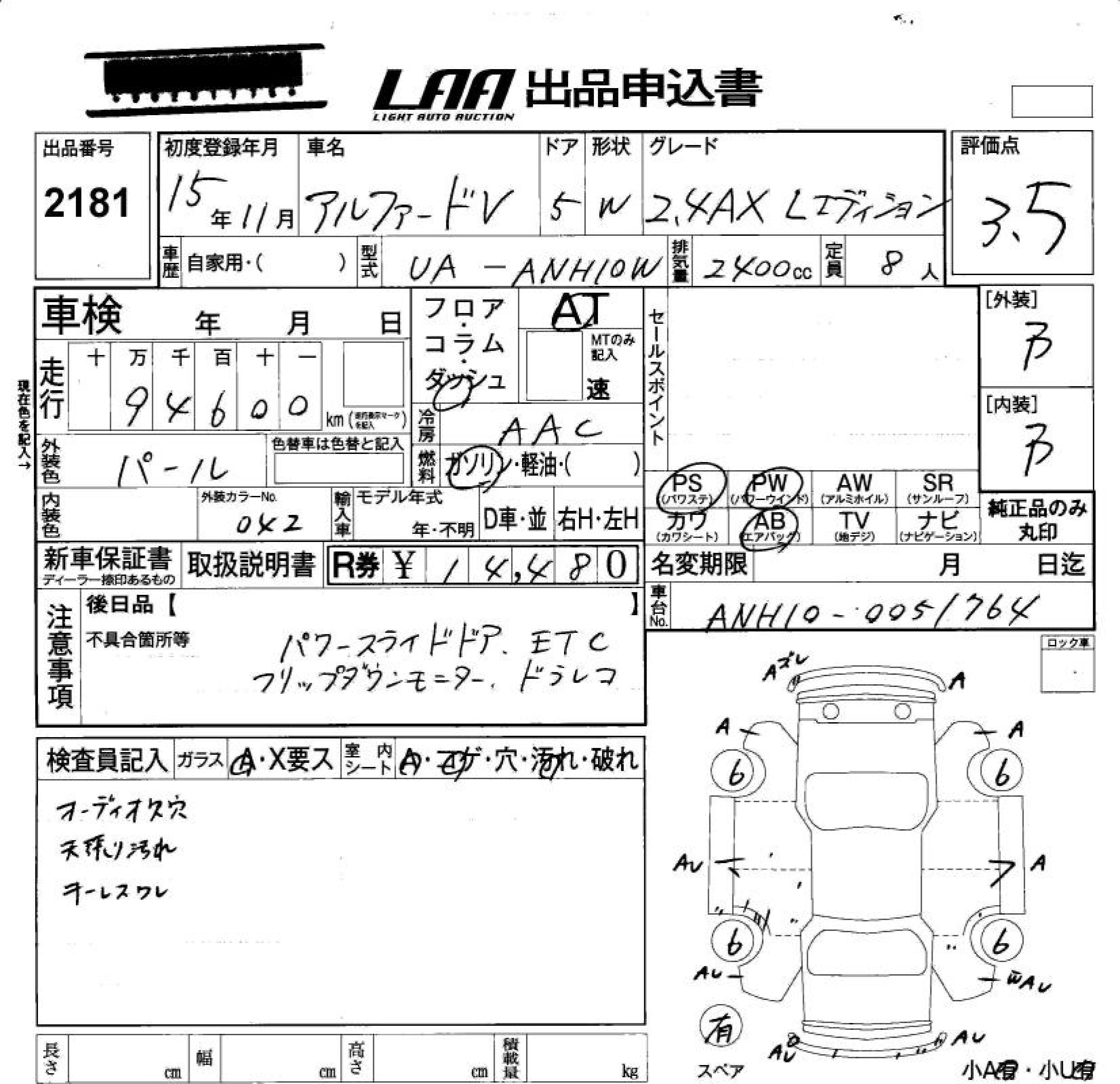 TOYOTA ALPHARD V - лот 2181