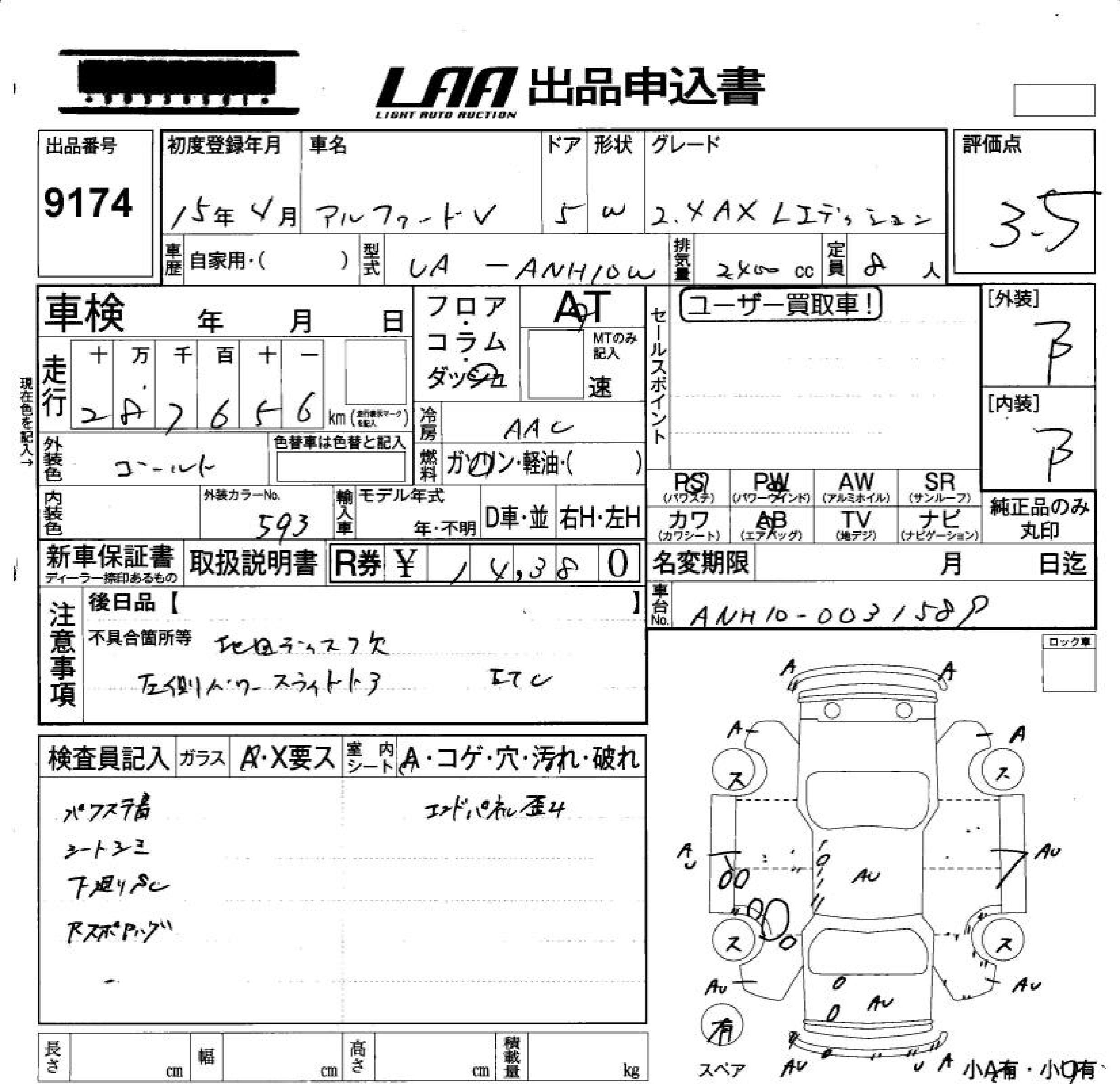TOYOTA ALPHARD V - лот 9174
