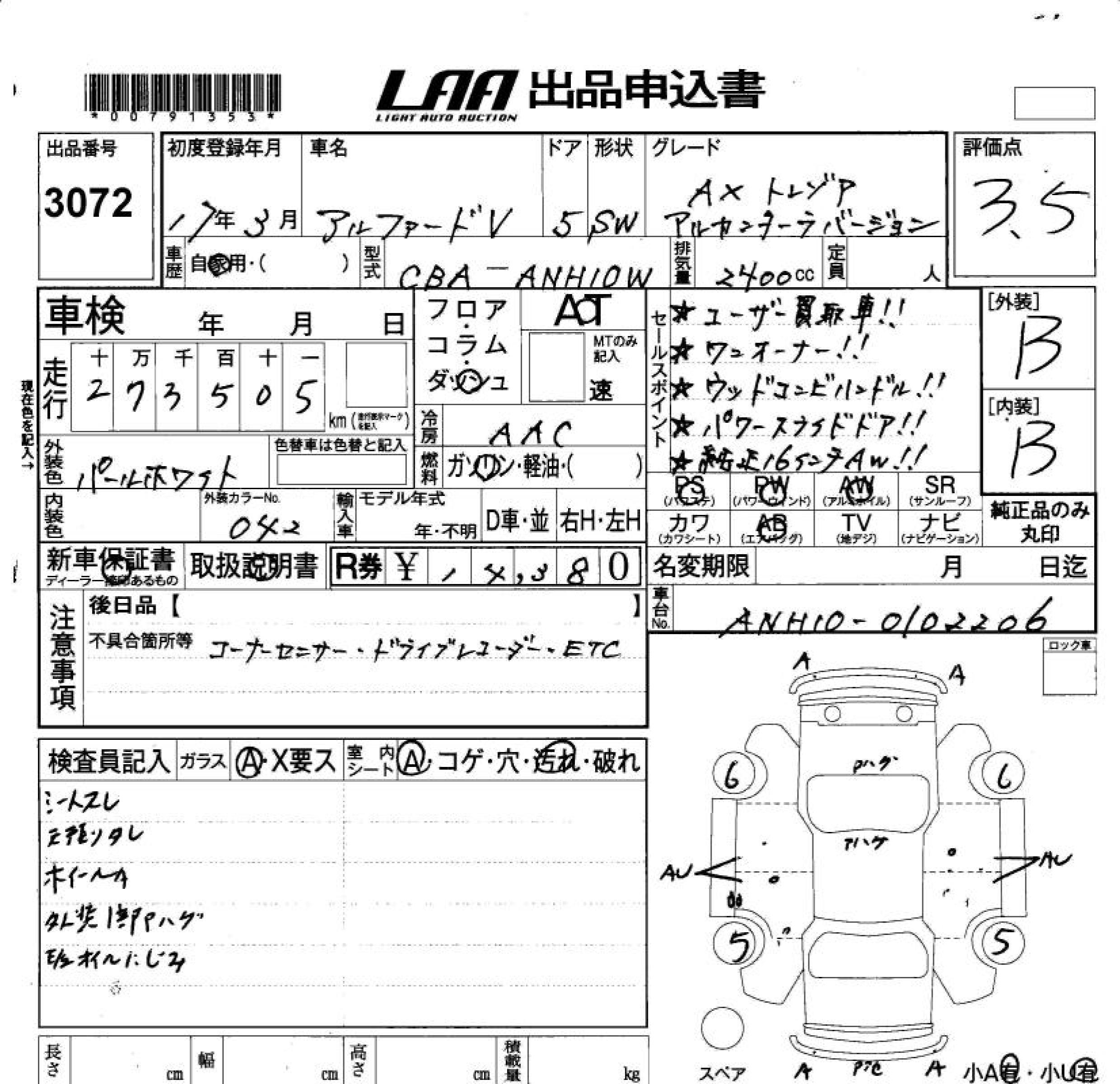TOYOTA ALPHARD V - лот 3072
