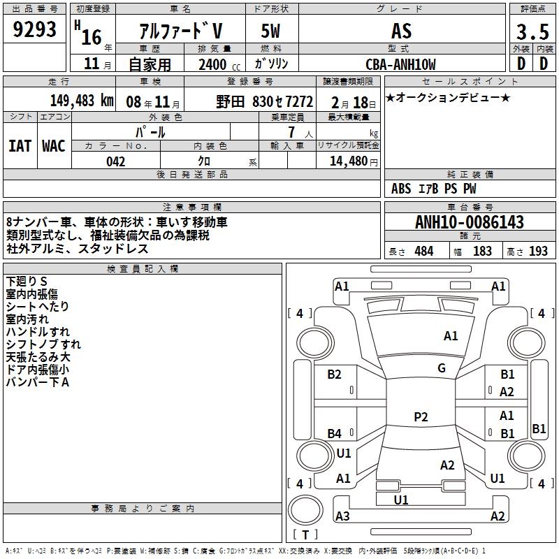 TOYOTA ALPHARD V AS - лот 9293