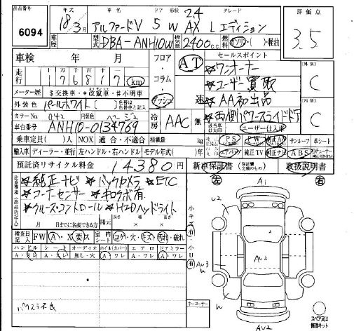 TOYOTA ALPHARD V 2.4 AX L EDITION - лот 6094