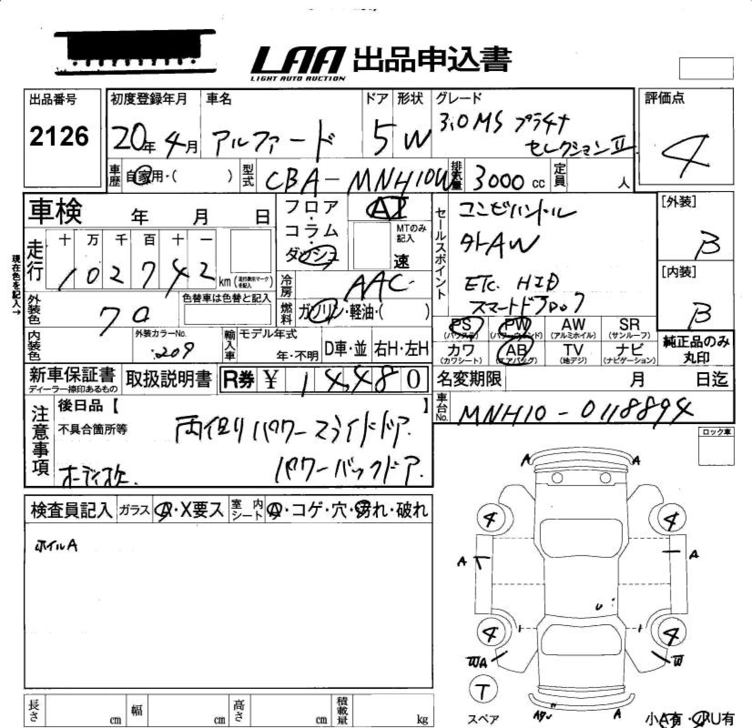 TOYOTA ALPHARD V 3.0MS PLATINUM SELECTION - лот 2126