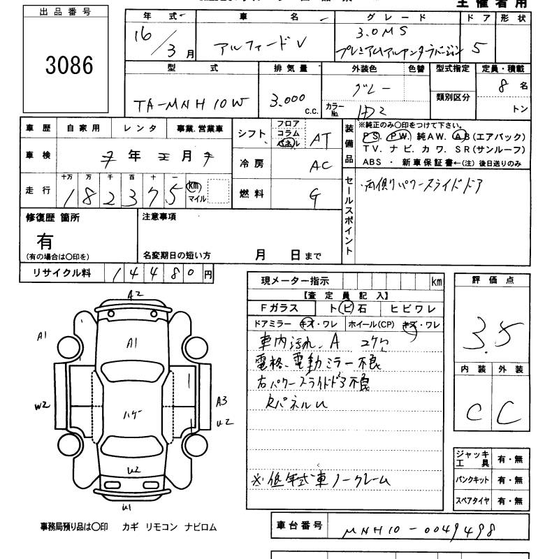 TOYOTA ALPHARD V 3.0MS PREMIUM ALCANTARA IS - лот 3086