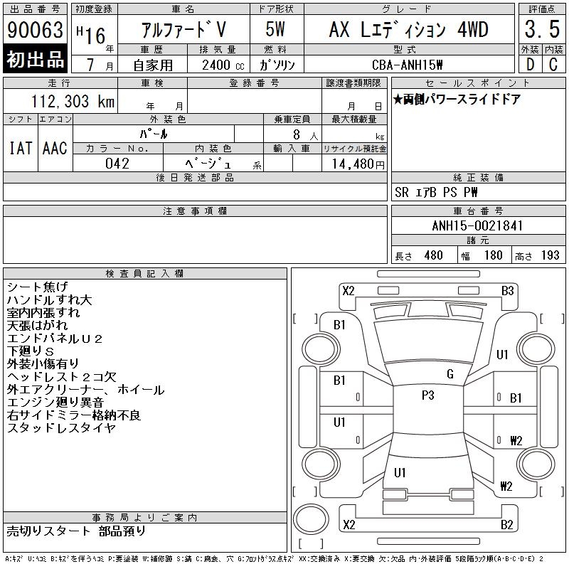 TOYOTA ALPHARD V AX L EDITION 4WD - лот 90063