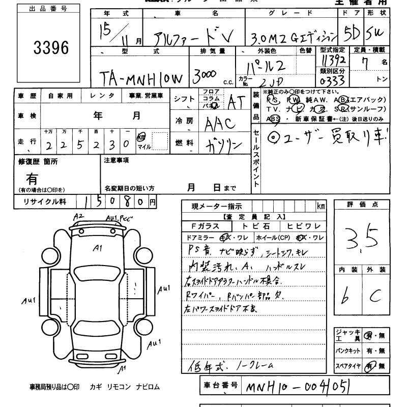 TOYOTA ALPHARD V 3.0MZ G EDITION - лот 3396