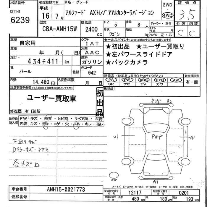 TOYOTA ALPHARD V AX TRESOR ALCANTARA VERSION 4WD - лот 6239